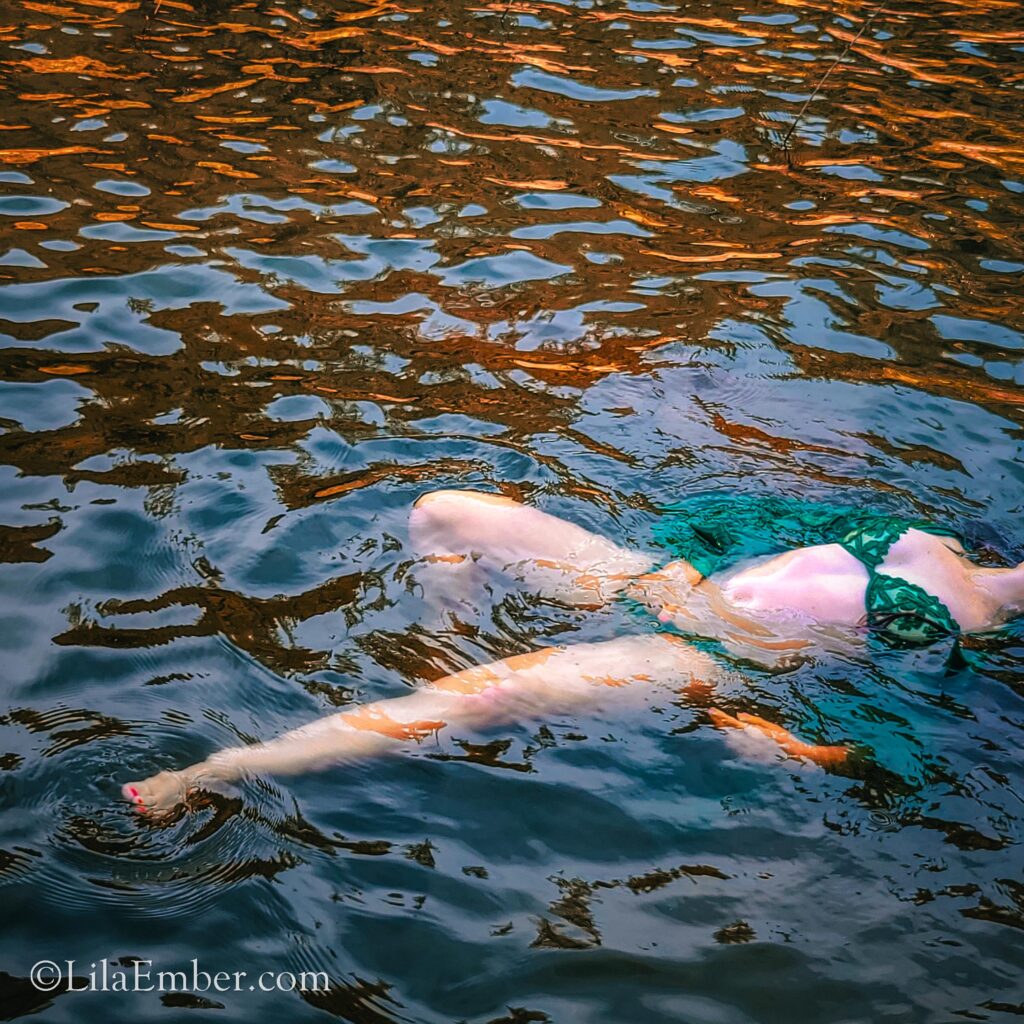 Naked woman in a lake.